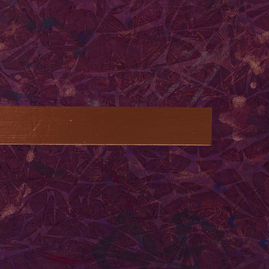 The texture and depth of this work is created by first layering marks using many different colors. I sand though the layers and harmonize the piece using several layers of glaze. Then I add surface detail to complete the painting.