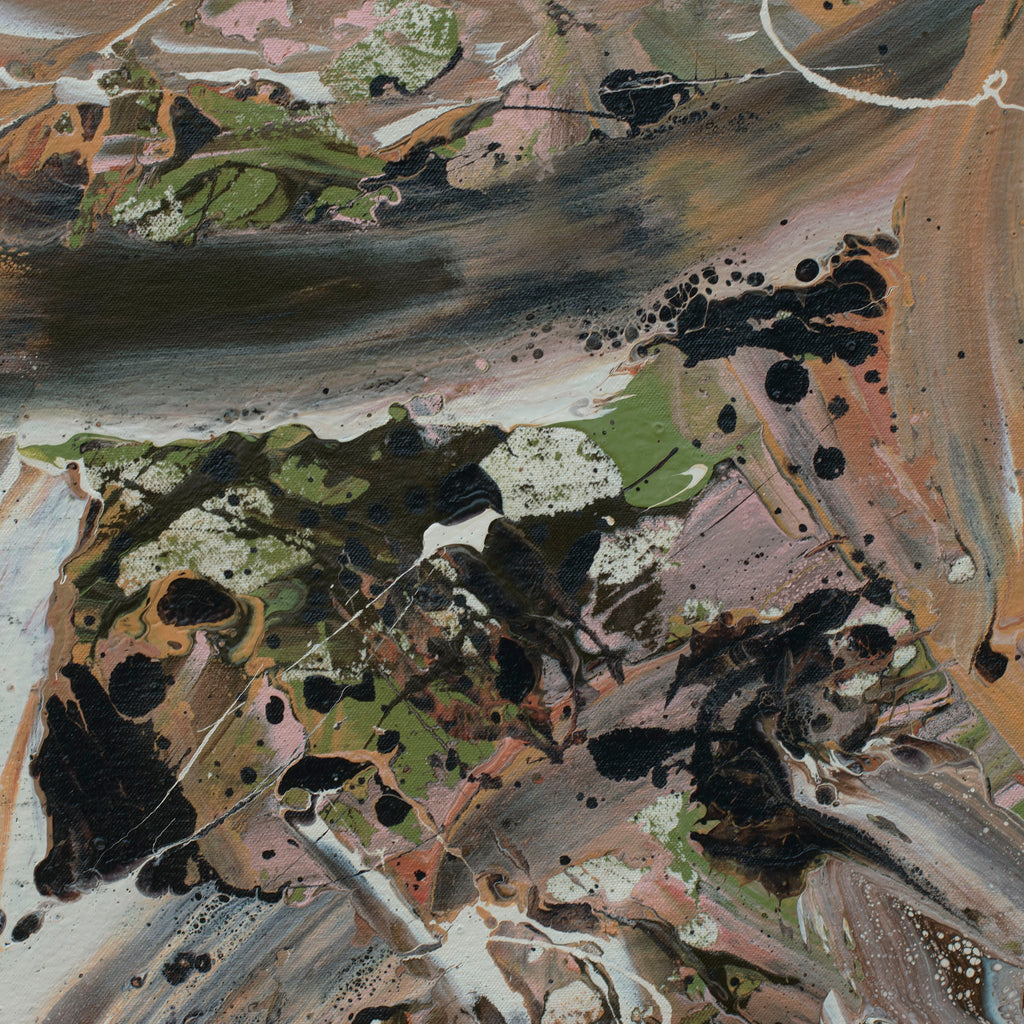I use a number of different techniques to create this work, responding to each piece as it develops. I let the painting tell me what it needs next, and the pieces are created through the application of many layers of paint.