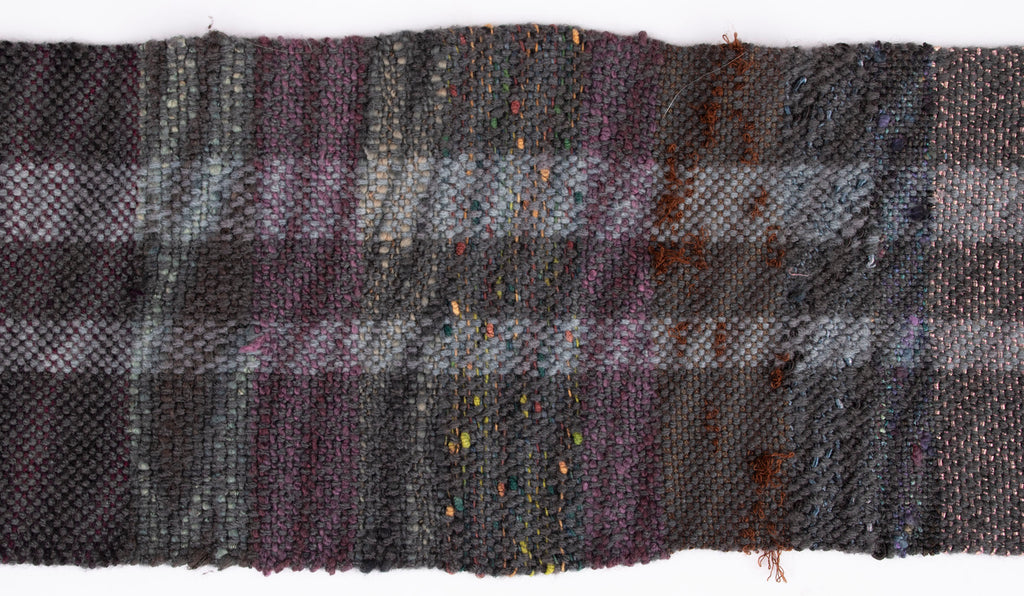 Creating these scarves is like making a patchwork quilt. I don’t have a particular design in mind when I weave. I use a little of this and a little of that until I reach the end of the warp. Then I get to unroll the finished scarf and see what I’ve got!