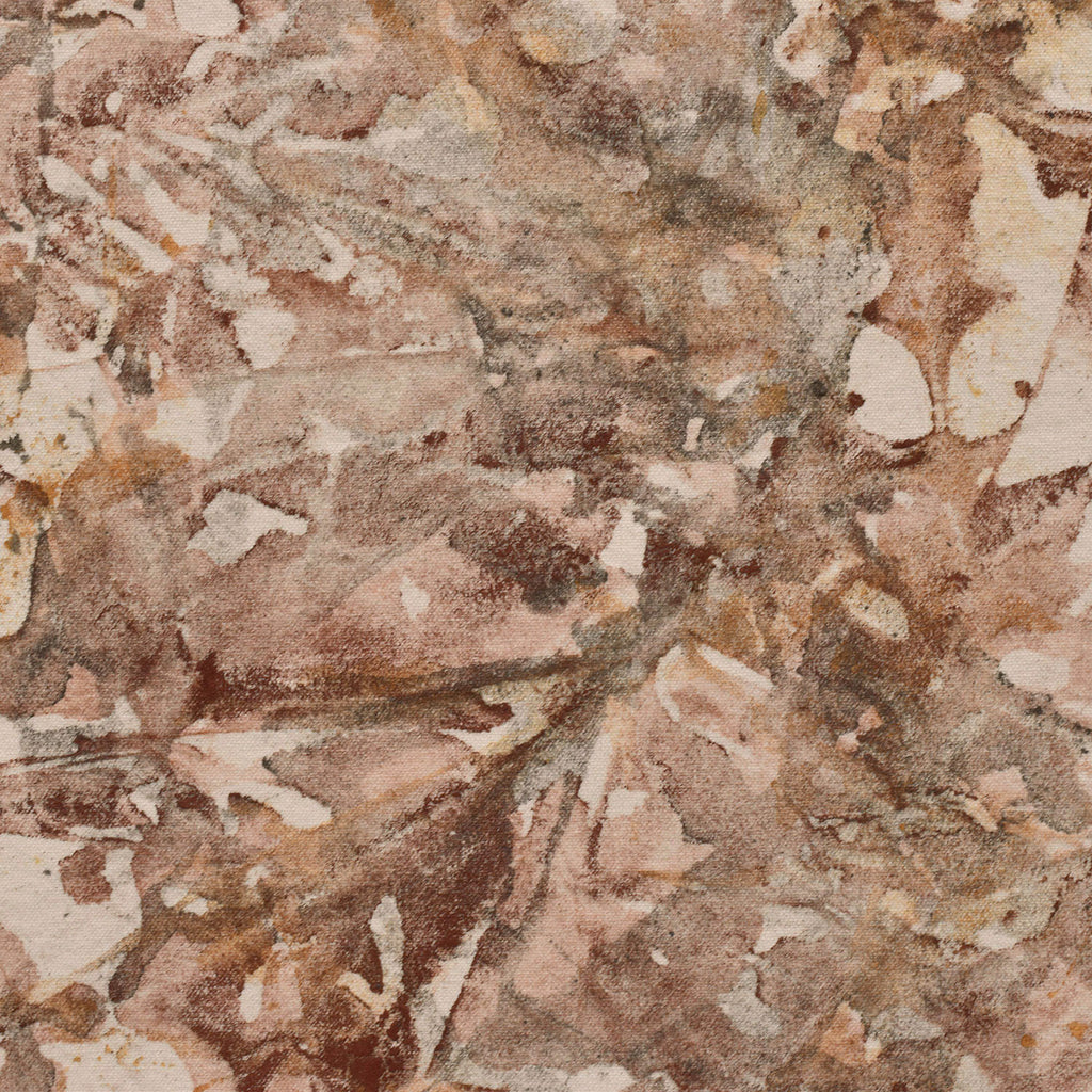 The pigments that I use are minerals found in the earth -- burnt sienna, raw umber, yellow ochre, orange ochre, red iron oxide, and graphite gray. I use diluted soy milk to bind the powdered pigments to the canvas and a finishing varnish to protect the piece.