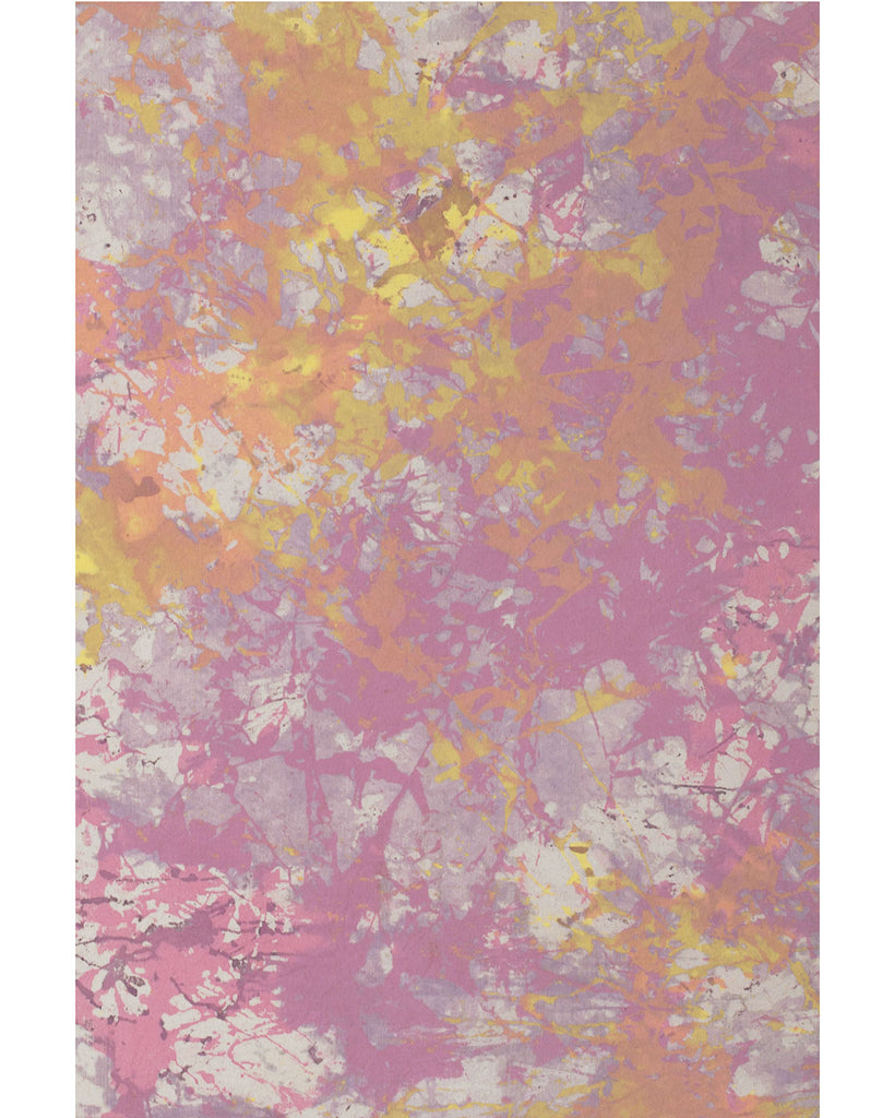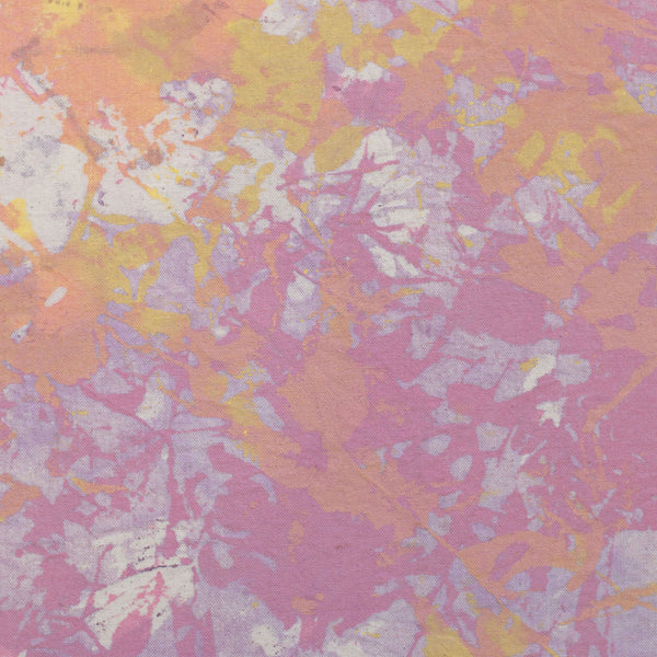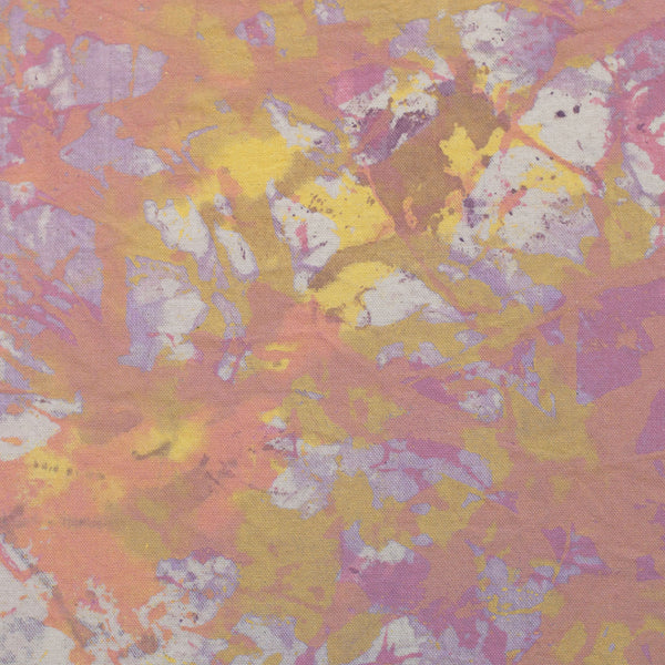 Each piece is executed with an experienced eye for design and an emphasis on harmony and balance. The canvas is intentionally wrinkled in the process, and the set-in wrinkles add texture and depth to the art. The striking patterns in the finished paintings often resemble animals, insects, people and plants.